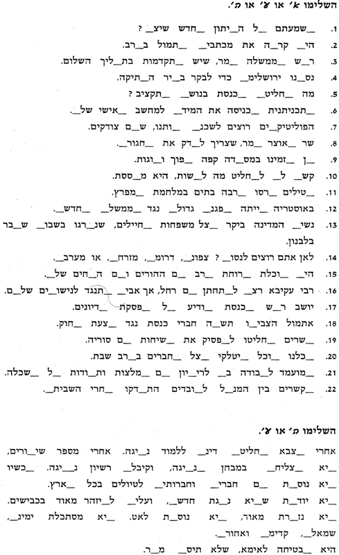 частичное объяснение темы на иврите и упражнения