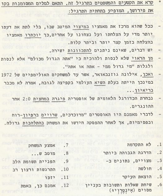 Основы физической культуры и спорта в Израиле были заложены в 1920-30-х годах, в период британского мандата на Палестину (она же Эрец-Исраэль). Однако из английского языка иврит заимствовал не так уж много спортивных терминов.